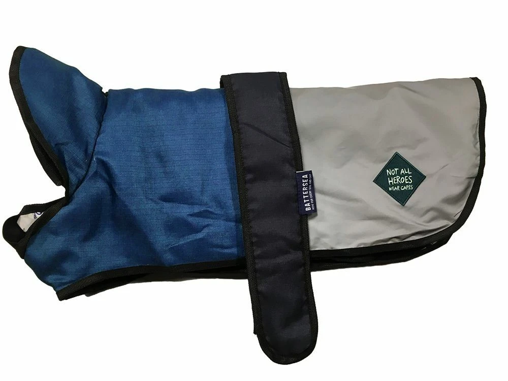 Made with 100% waterproof outer fabrics in iconic Battersea colours, together with a light reflective fabric for safety at night and unique printed ‘Playful Dogs’ lining matching the Battersea pet bedding collection.