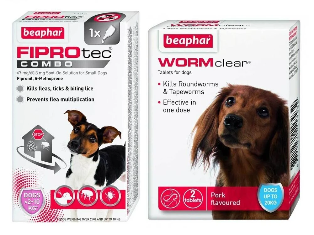 A money saving bundle containing Beaphar Fiprotec Combo spot on and Beaphar Wormclear.