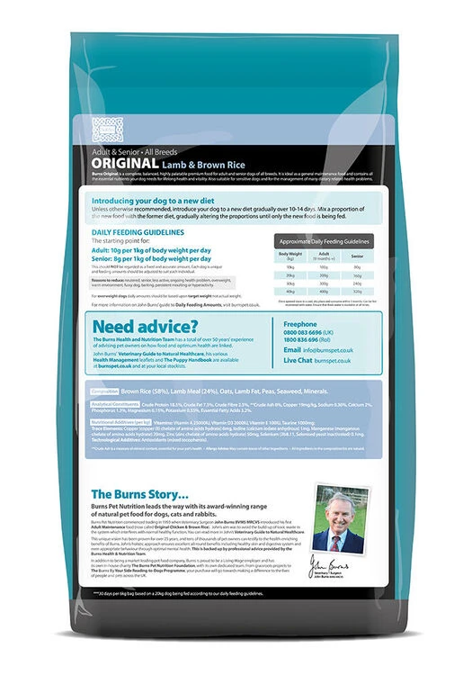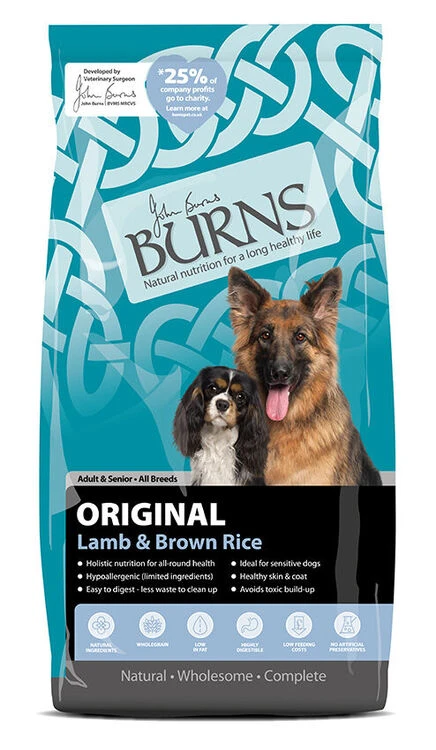 Burns Original Lamb and Brown Rice Dog Food is a hypoallergenic recipe that is full of nutrition and flavour. Made with high quality wholesome ingredients, this is a low fat meal that will ensure your dog gets a controlled amount of protein in their diet.