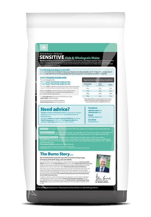 Made with a novel carbohydrate source and high-quality, highly digestible fish protein, Sensitive Fish is ideal for dogs with sensitive skin and digestion. Formulated without ingredients that commonly cause food intolerances such as wheat, soya, dairy, artificial colours and artificial preservatives, this Sensitive diet naturally helps to maintain healthy skin and coat and digestion. Wholegrain Maize is a novel carbohydrate, it is highly digestible and a great source of Omega 6 fatty acids.