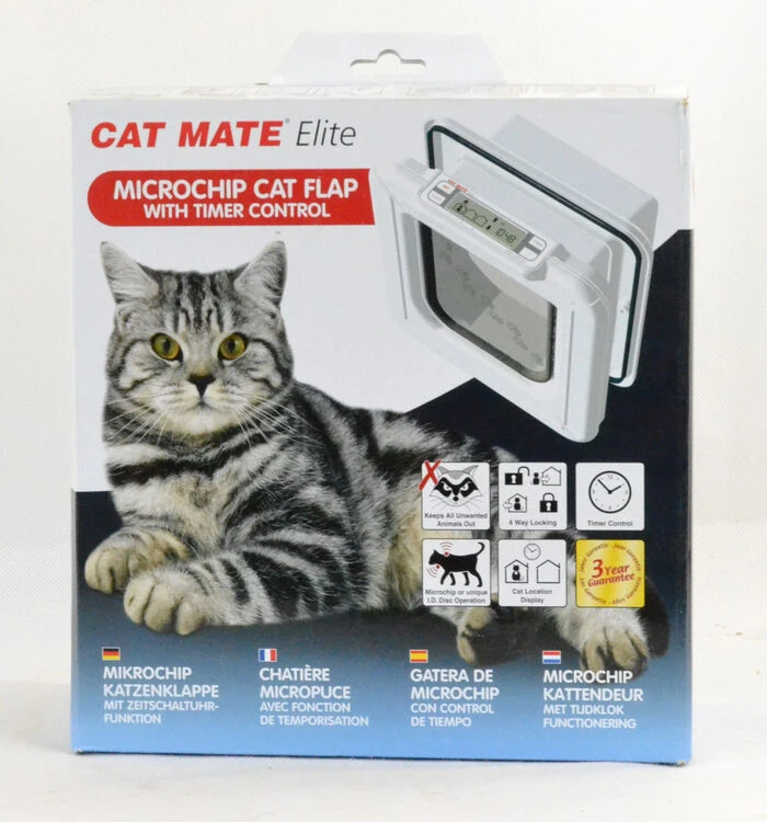 Perfect for a house that has multiple cats, the Cat Mate Elite Selective Microchip Cat Flap With Timer Control is capable of storing the details of up to nine cats, using their Cat Mate ID discs or microchips to identify them.