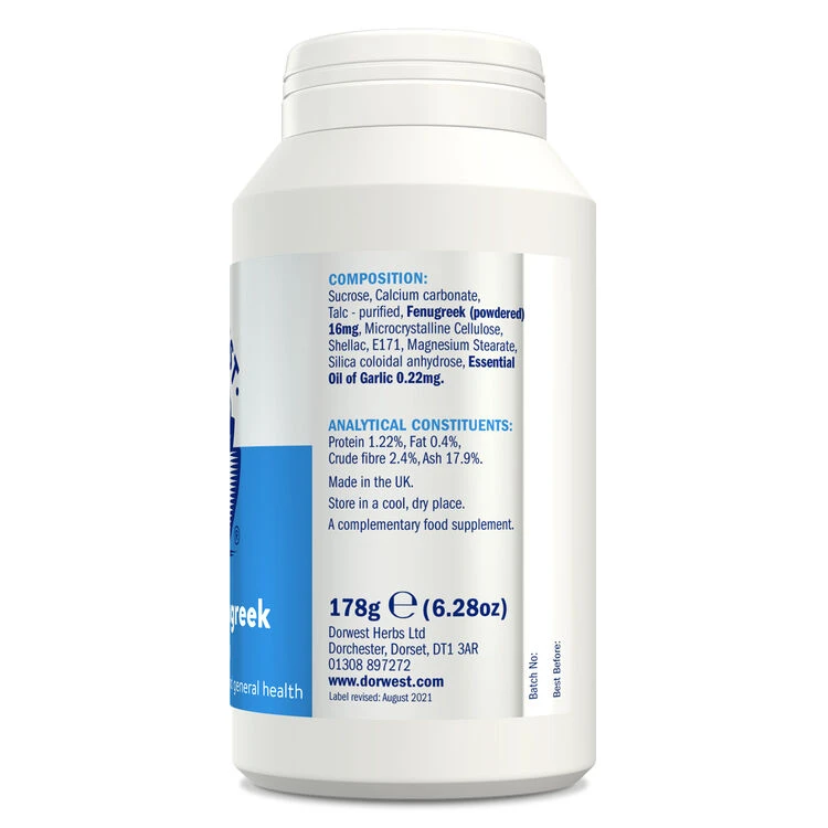 One of our best sellers for 60 years, and a fundamental Dorwest herbs ‘staple’ product, packed full of natural active compounds to support general health and help keep your pet feeling their best. Garlic and fenugreek are both known for their beneficial health properties; garlic provides supportive, soothing and cleansing effects, as well as helping to maintain the body’s defences against parasites and infectious agents. While fenugreek contains soothing and antioxidant compounds to neutralise free radicals. The beneficial effects are seen across multiple body systems, including the skin, joints and immune system: