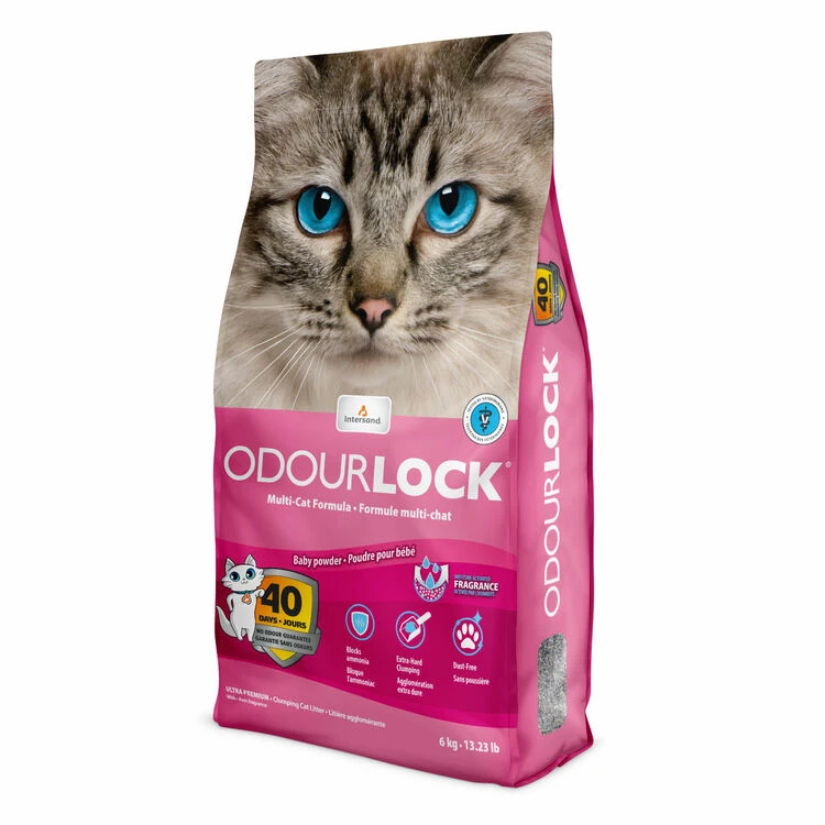 This clumping cat litter is made from all-natural clay. Its patented “Smart Odour Shield” technology blocks ammonia release, uniquely neutralising urine and faeces odours for 40 days. This ultra-fast clumping and easy scooping litter makes litter box cleaning so effortless. OdourLock generates less waste than competing clay litters: you’ll use 45% less litter per year. Plus, it’s 99.9% dust-free, leaving no tracking on floors or furniture and keeping your cat’s and your family’s respiratory systems safe. It is soft and comfortable for your cat. It is easily carried thanks to its side handle and is manufactured in Quebec.