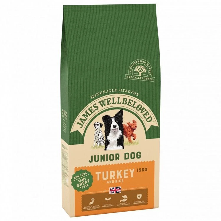 Using all our knowledge and experience, we’ve created James Wellbeloved Turkey & Rice Junior. We take a handful of ingredients from nature, one source of animal protein and combine them with all the vitamins and minerals your junior dog needs. For added peace of mind, it’s naturally hypoallergenic so less likely to cause an adverse food reaction and you will never see any added artificial colours, flavours or preservatives. Not now, not ever.