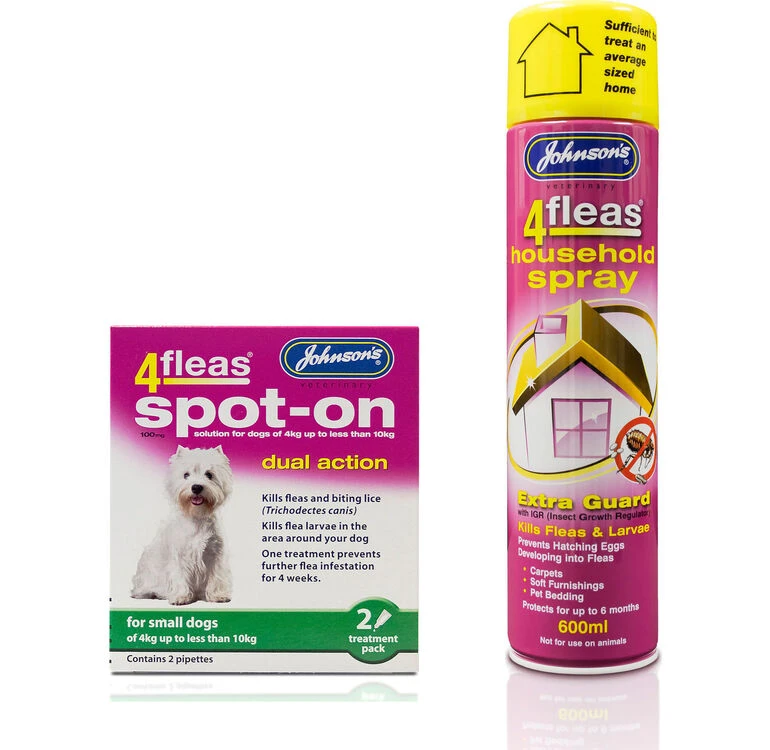 - Johnson’s 4fleas Spot-On Dual Action For Small Dogs – 4 to 10kg – 2 Treatments