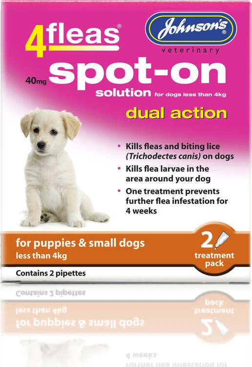 Fast Acting Spot-On, kills fleas on contact (on your pet) and the surrounding area for up to 2 months protection. For pets over 8 weeks of age. Contains 2 vials, each vial giving up to 4 weeks protection.