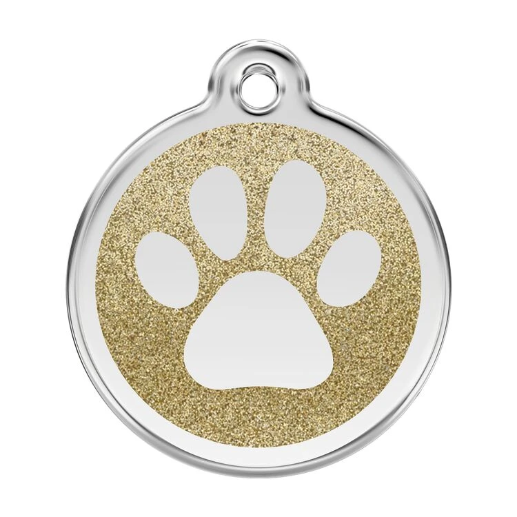 Red Dingo Glitter Engraved Dog Tag Paw Print Gold