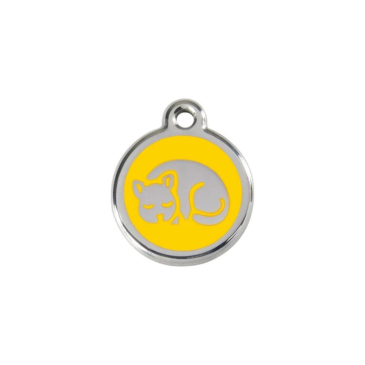 Red Dingo Stainless Steel Engraved Cat Tag Kitten Yellow