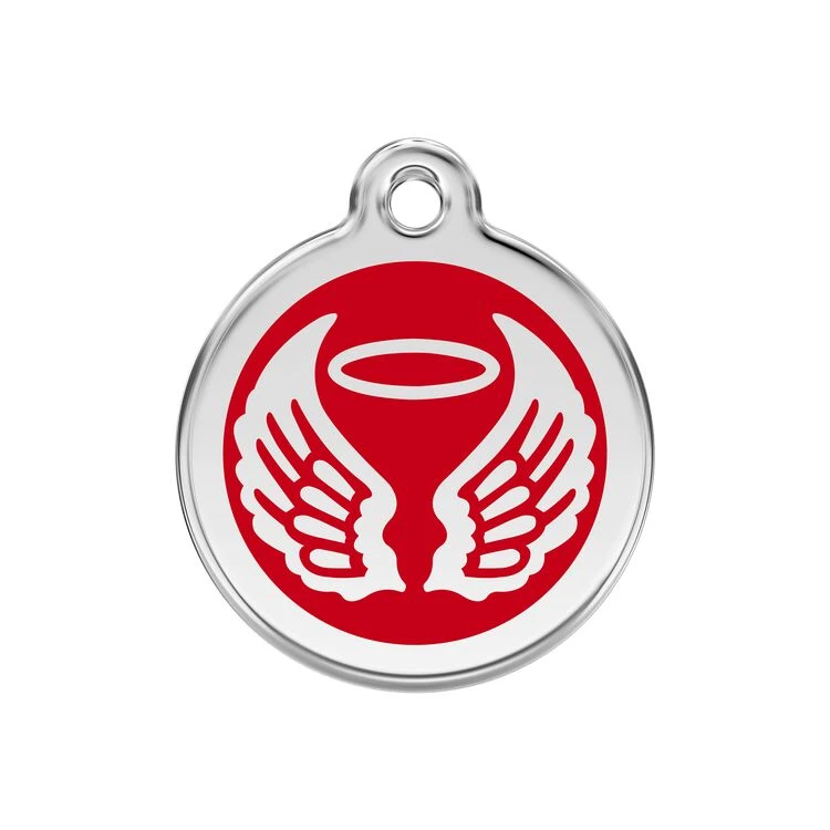Red Dingo Stainless Steel Engraved Dog Tag Angel Wings Red
