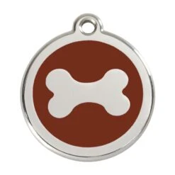 Red Dingo Stainless Steel Engraved Dog Tag Bone Brown