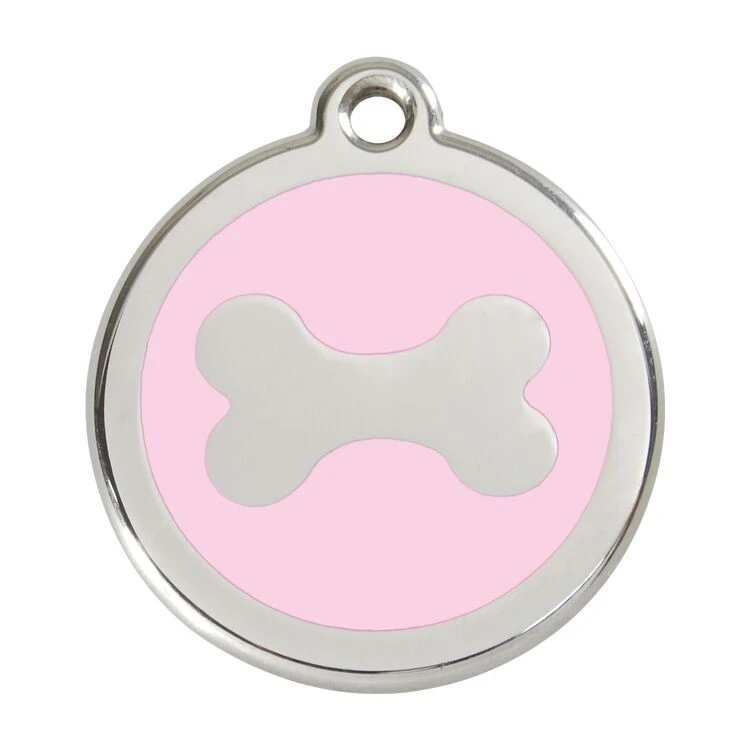 Red Dingo Stainless Steel Engraved Dog Tag Bone Pink