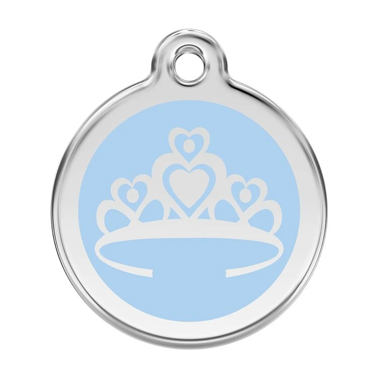 Red Dingo Stainless Steel Engraved Dog Tag Crown Light Blue