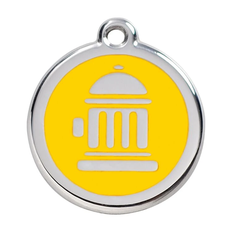 Red Dingo Stainless Steel Engraved Dog Tag Fire Hydrant Yellow