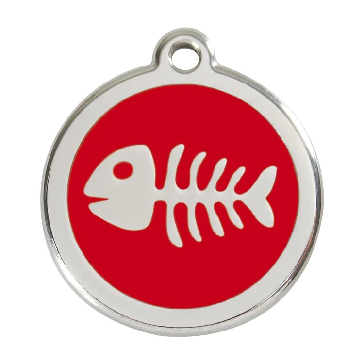 Red Dingo Stainless Steel Engraved Dog Tag Fish Skeleton Red