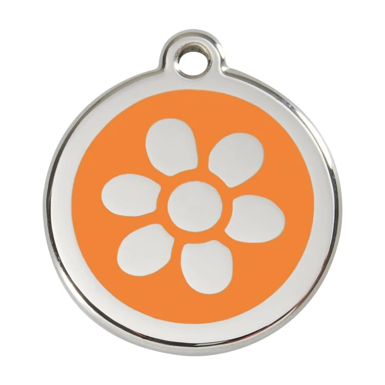 Red Dingo Stainless Steel Engraved Dog Tag Flower Orange