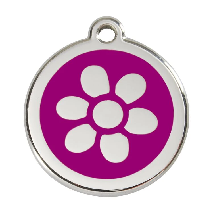 Red Dingo Stainless Steel Engraved Dog Tag Flower Purple