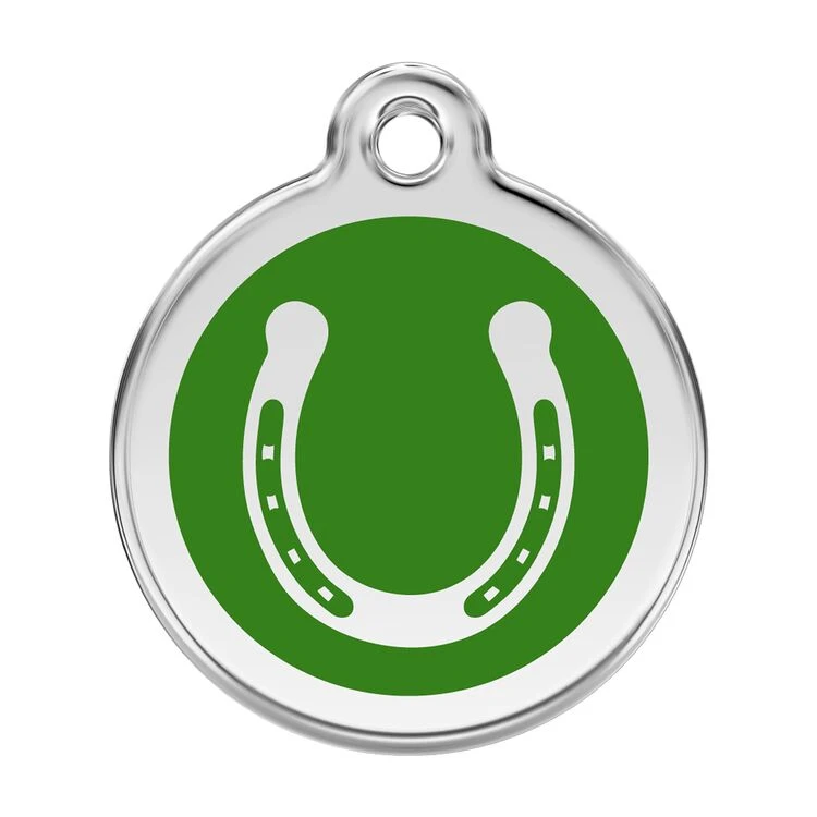 Red Dingo Stainless Steel Engraved Dog Tag Horse Shoe Green