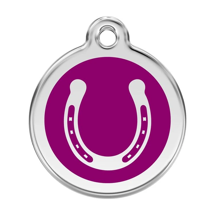 Red Dingo Stainless Steel Engraved Dog Tag Horse Shoe Purple