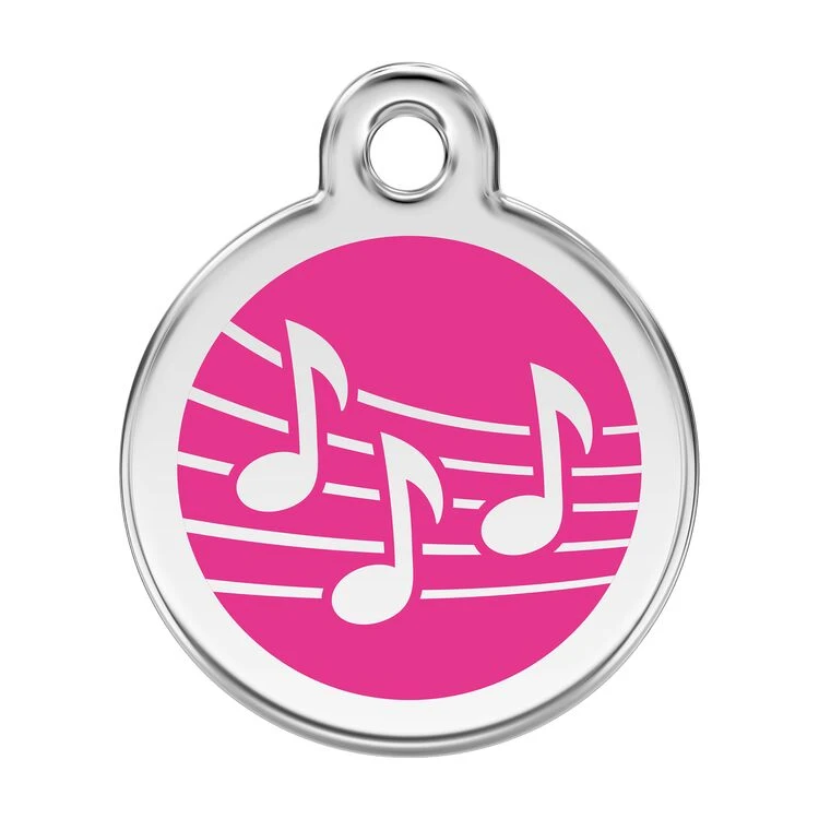 Red Dingo Stainless Steel Engraved Dog Tag Music Hot Pink