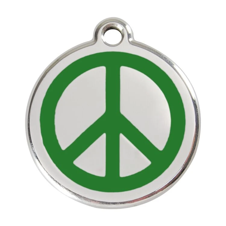 Red Dingo Stainless Steel Engraved Dog Tag Peace Green