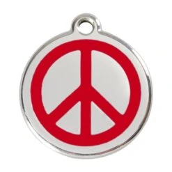 Red Dingo Stainless Steel Engraved Dog Tag Peace Red