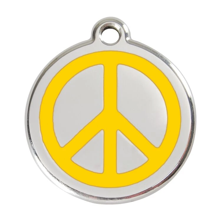 Red Dingo Stainless Steel Engraved Dog Tag Peace Yellow