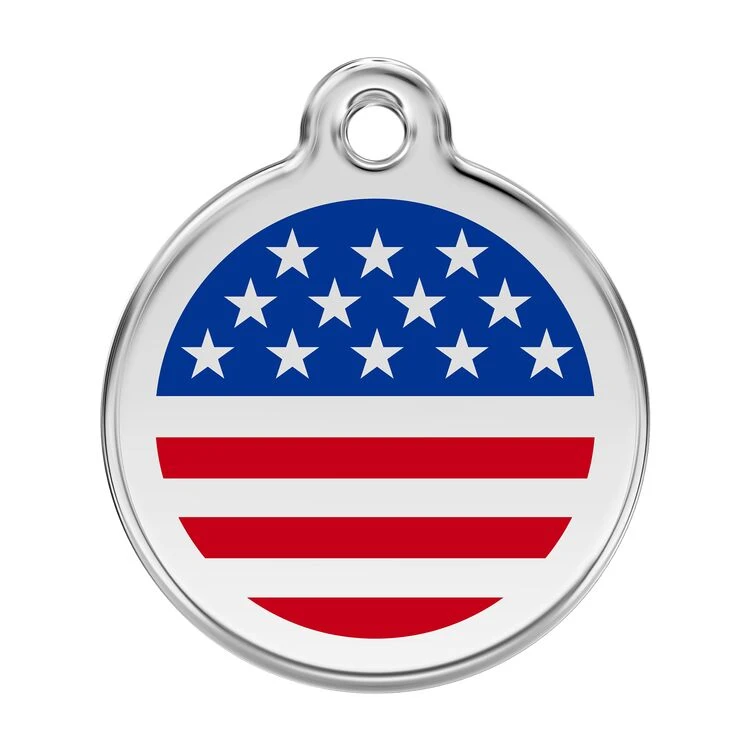 Red Dingo Stainless Steel Engraved Dog Tag US Flag Navy